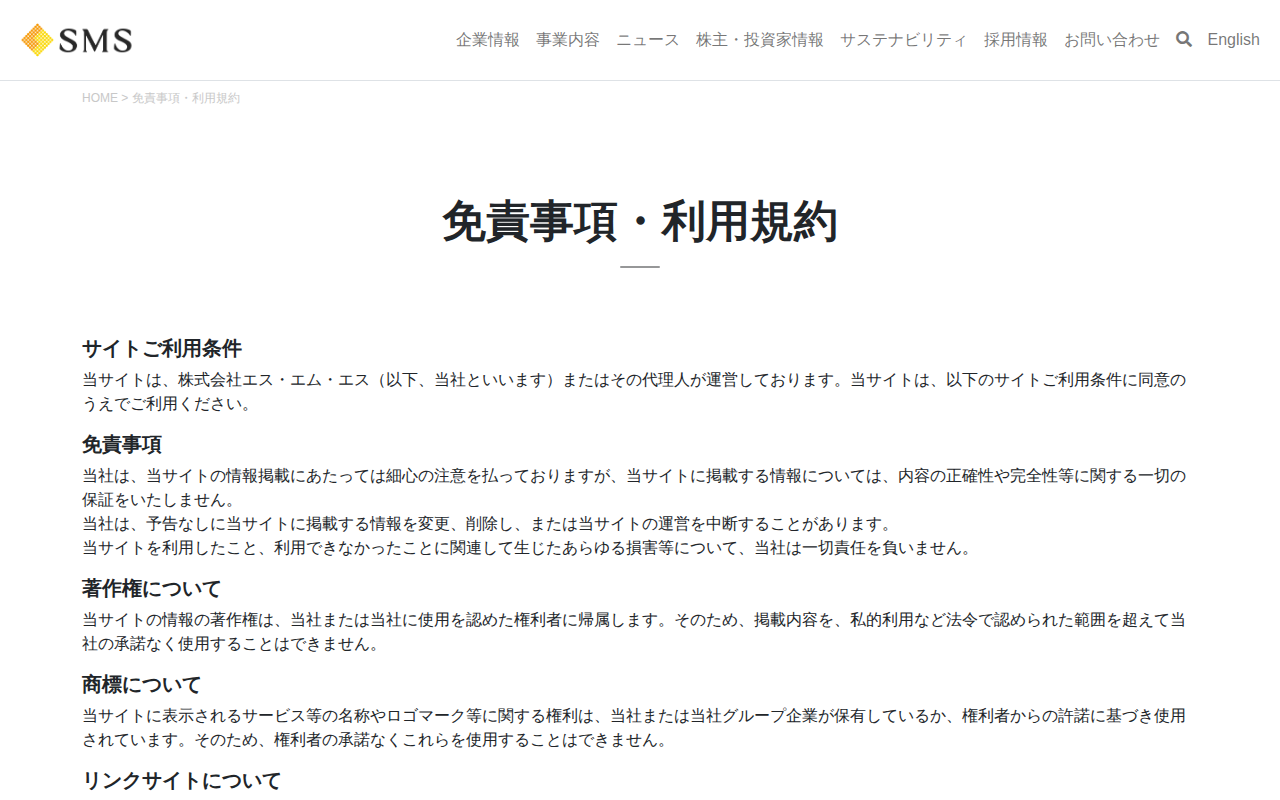 免責事項・利用規約|株式会社エス・エム・エス