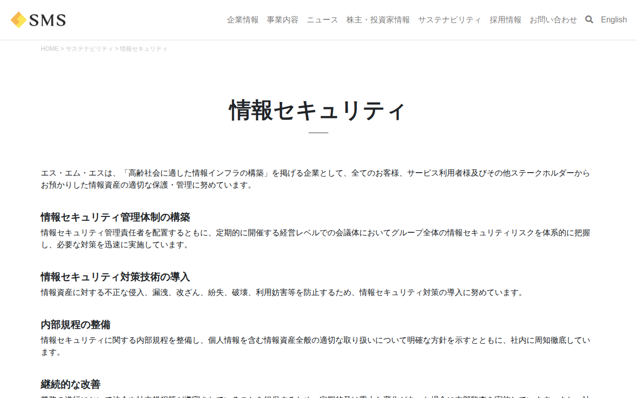 情報セキュリティ|サステナビリティ|株式会社エス・エム・エス