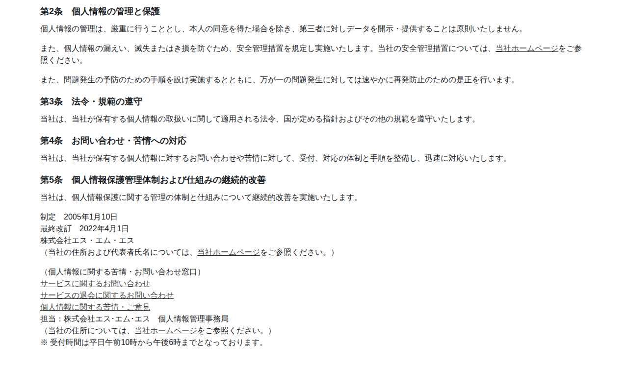 個人情報保護方針|株式会社エス・エム・エス