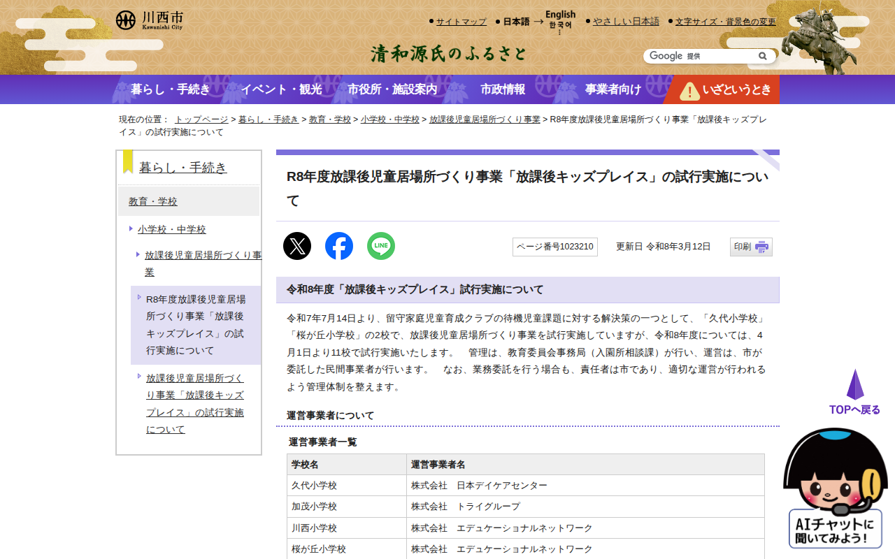 R8年度放課後児童居場所づくり事業「放課後キッズプレイス」の試行実施について|川西市