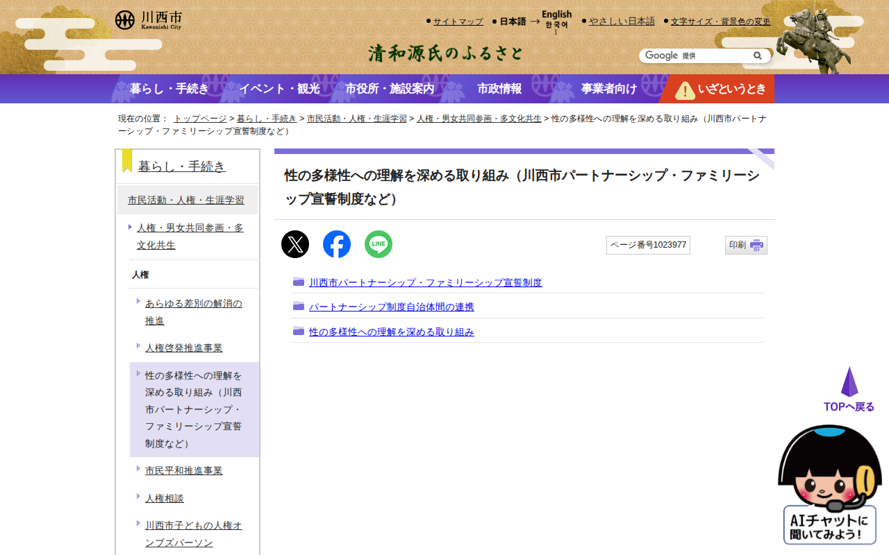 性の多様性への理解を深める取り組み(川西市パートナーシップ・ファミリーシップ宣誓制度など)|川西市