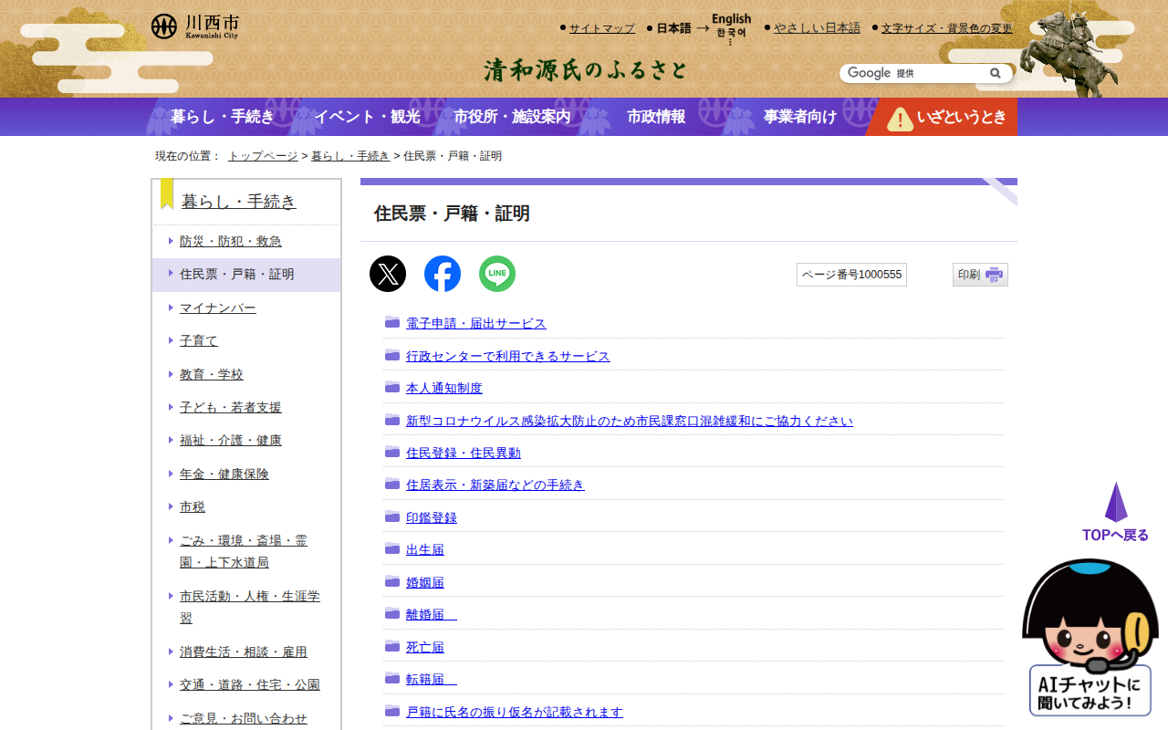 住民票・戸籍・証明|川西市