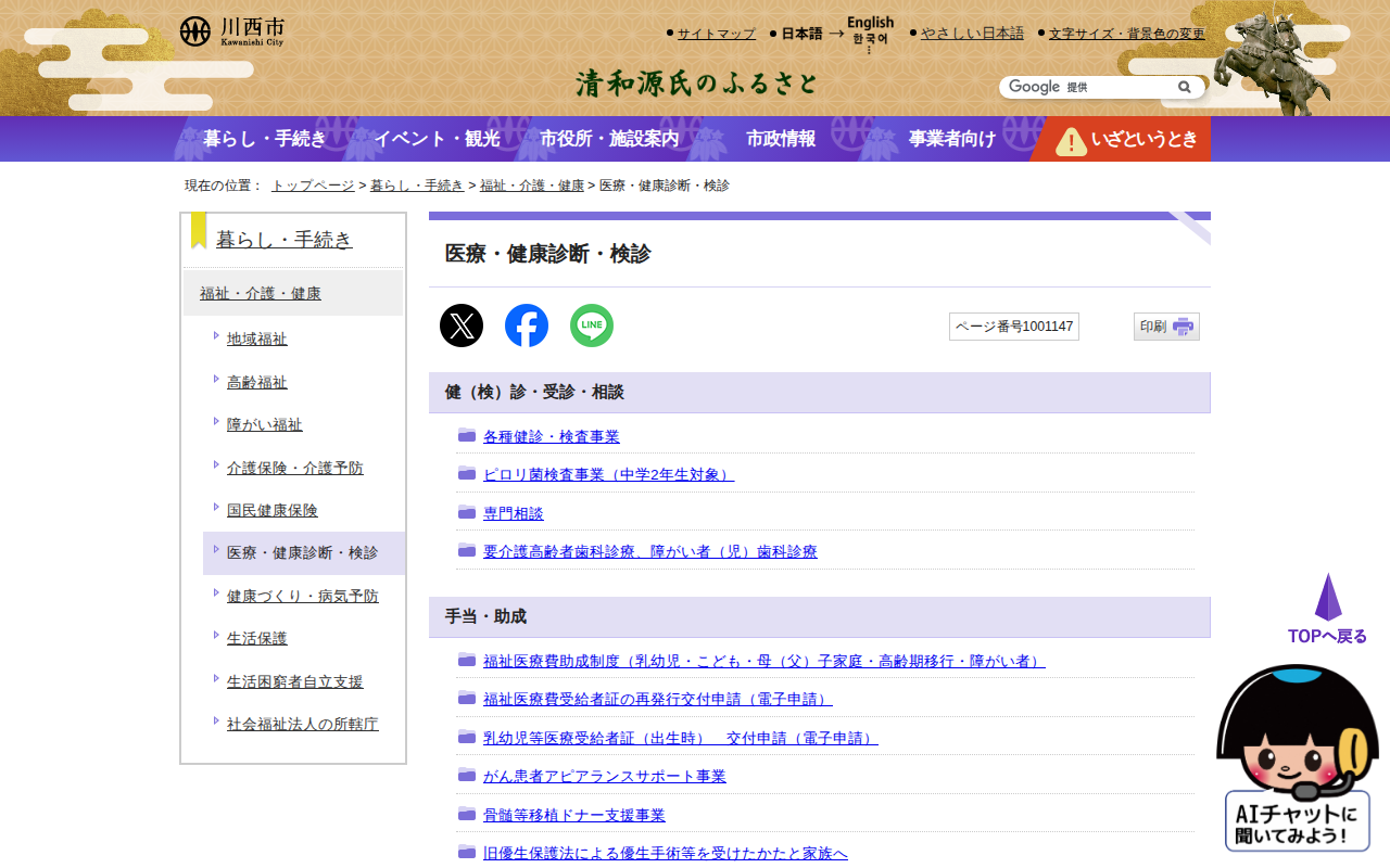医療・健康診断・検診|川西市