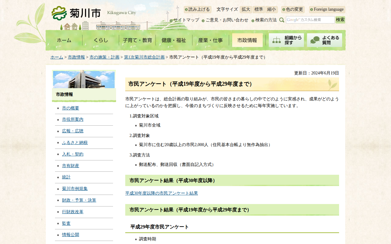 菊川市/市民アンケート(平成19年度から平成29年度まで)