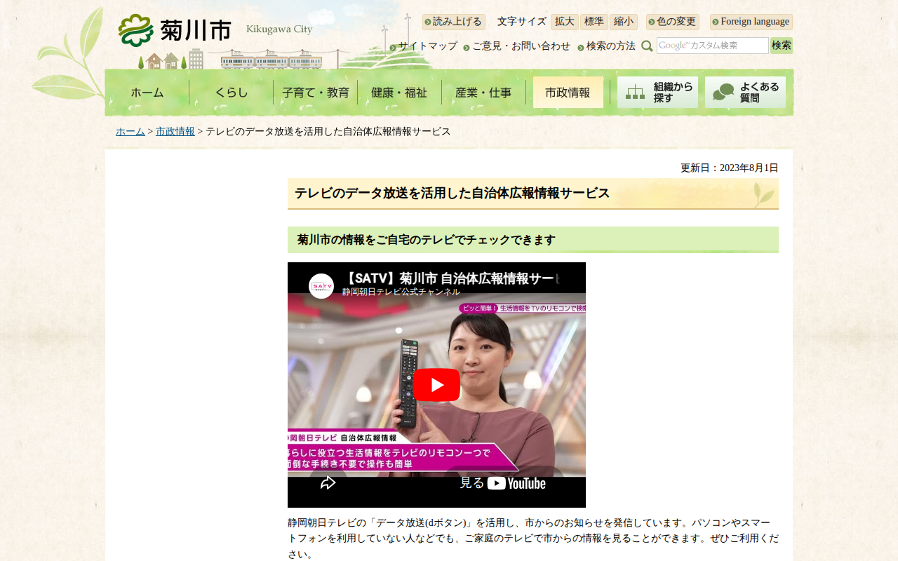 菊川市/テレビのデータ放送を活用した自治体広報情報サービス