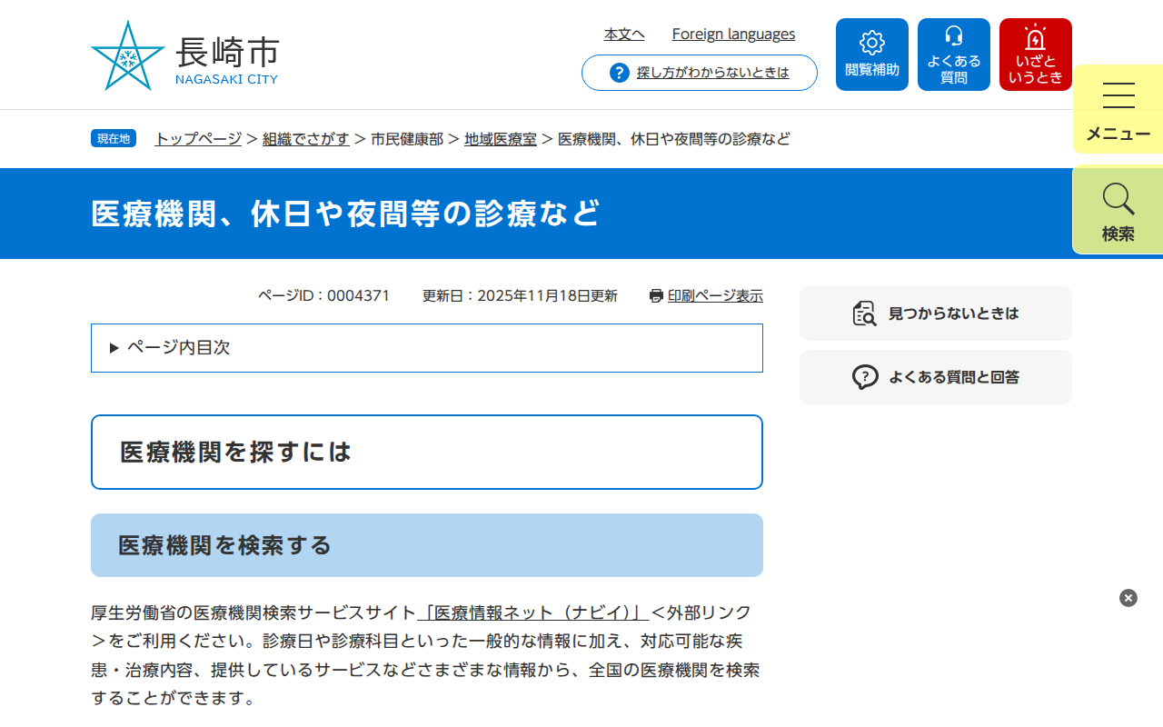 医療機関、休日や夜間等の診療など - 長崎市ウェブサイト(地域医療室)