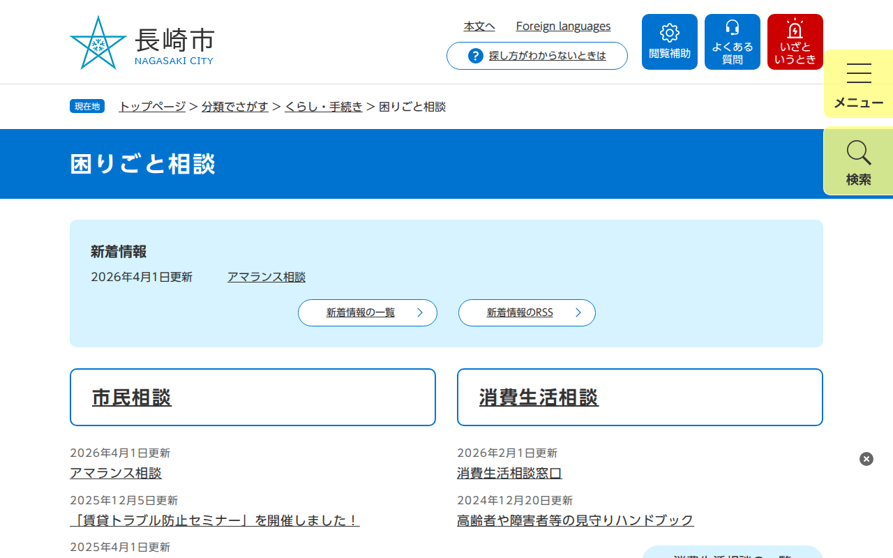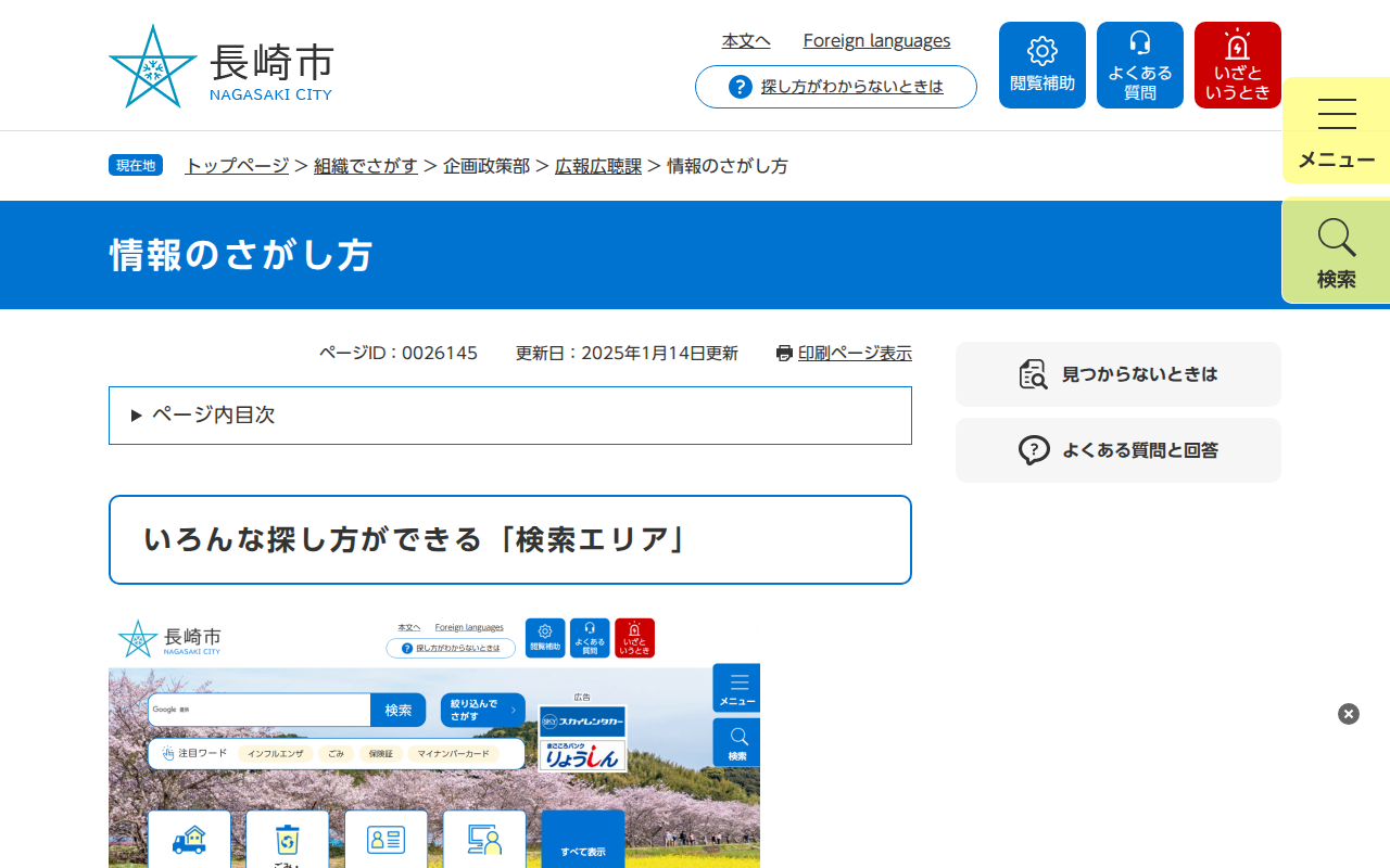情報のさがし方 - 長崎市ウェブサイト(広報広聴課)