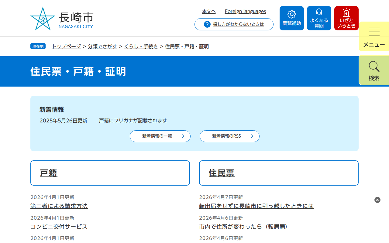 住民票・戸籍・証明 - 長崎市ウェブサイト