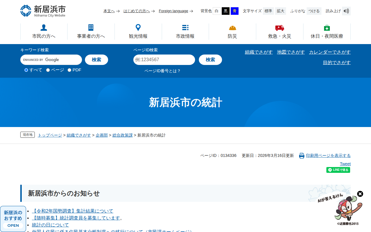 新居浜市の統計 - 愛媛県新居浜市ホームページ|四国屈指の臨海工業都市