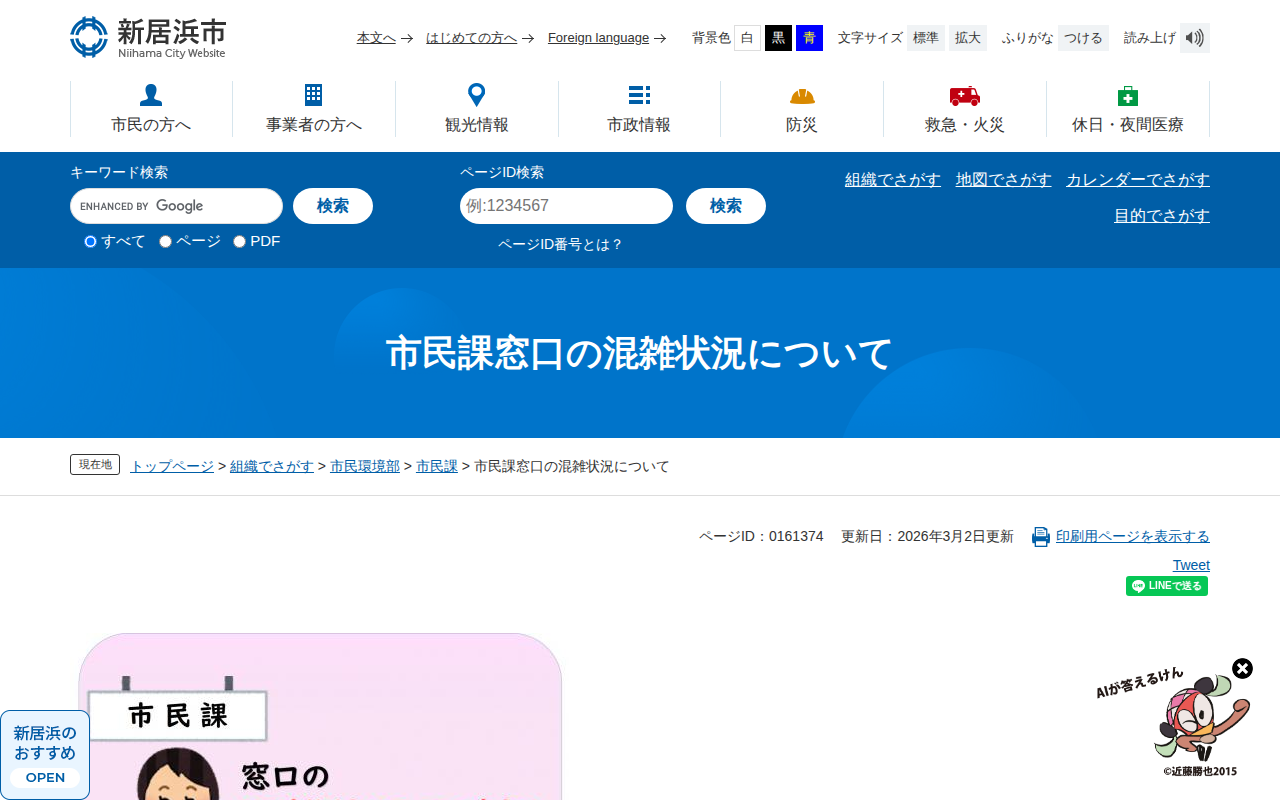 市民課窓口の混雑状況について - 愛媛県新居浜市ホームページ|四国屈指の臨海工業都市