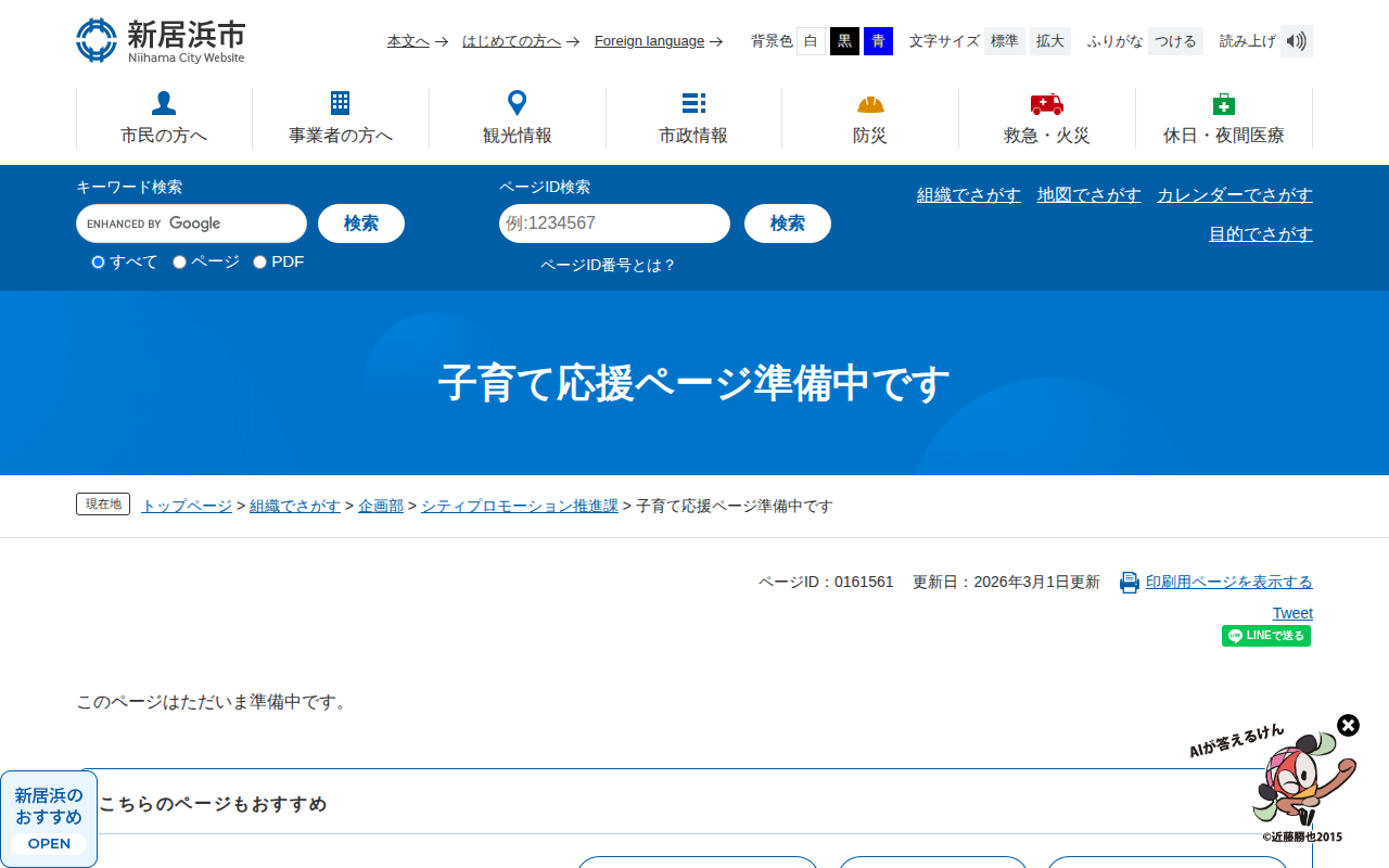 子育て応援ページ準備中です - 愛媛県新居浜市ホームページ|四国屈指の臨海工業都市
