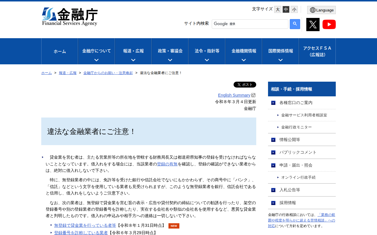 This page is a financial regulatory alert warning against illegal lending operators. The Financial Services Ag...