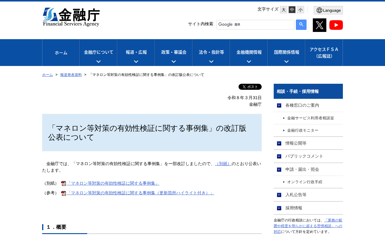 「マネロン等対策の有効性検証に関する事例集」の改訂版公表について:金融庁