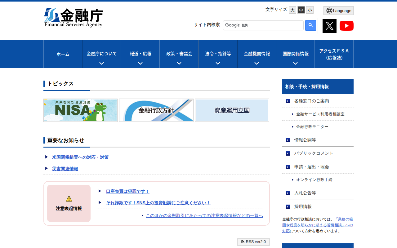 This page is the official website of Japan's Financial Services Agency (FSA). It presents key topics including...