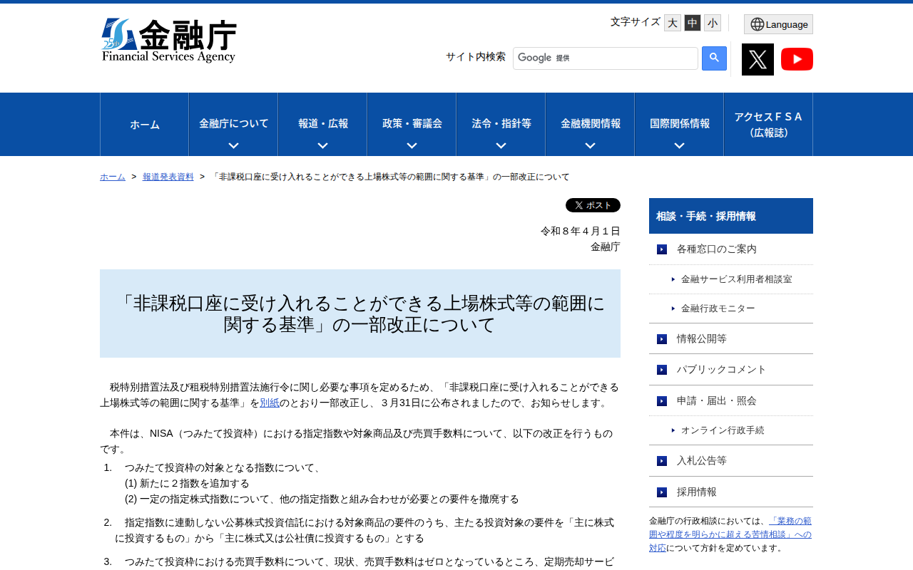 「非課税口座に受け入れることができる上場株式等の範囲に関する基準」の一部改正について:金融庁