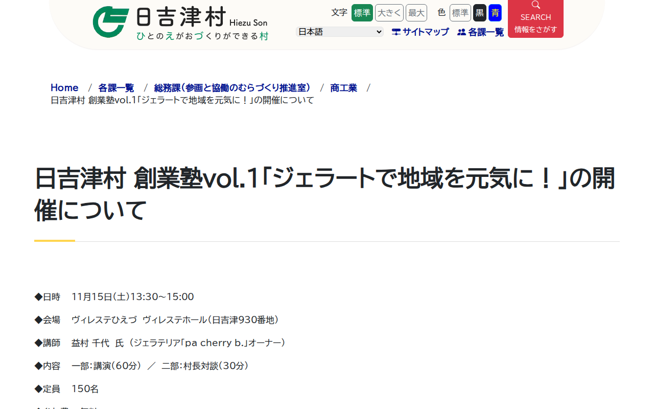 日吉津村 創業塾vol.1「ジェラートで地域を元気に!」の開催について – 日吉津村