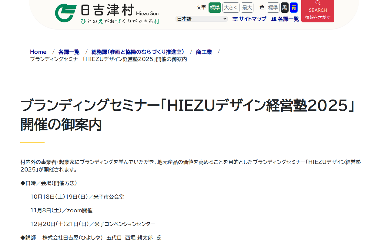 ブランディングセミナー「HIEZUデザイン経営塾2025」開催の御案内 – 日吉津村