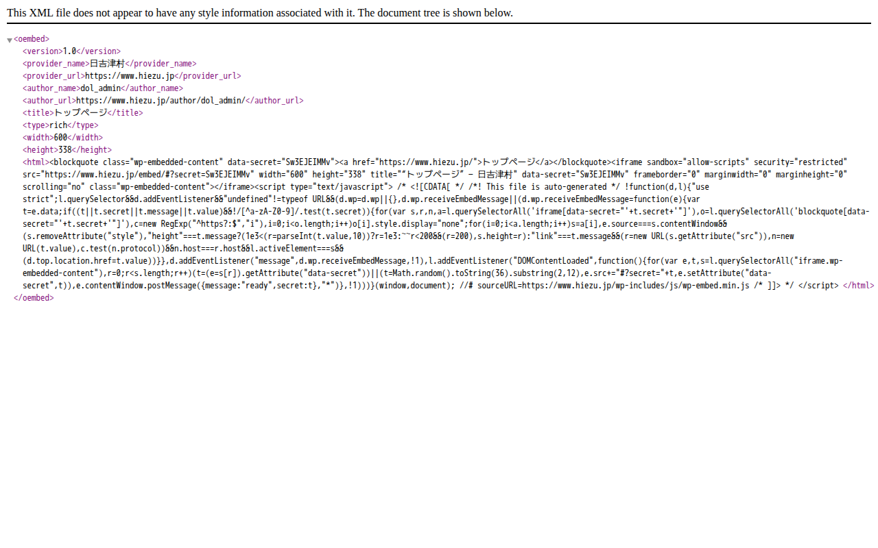 /wp-json/oembed/1.0/embed?url=https%3A%2F%2Fwww.hiezu.jp%2F&format=xml