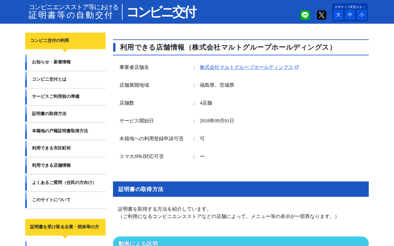 コンビニエンスストア等における証明書等の自動交付【コンビニ交付】 | 利用できる店舗情報(株式会社マルトグループホールディングス)