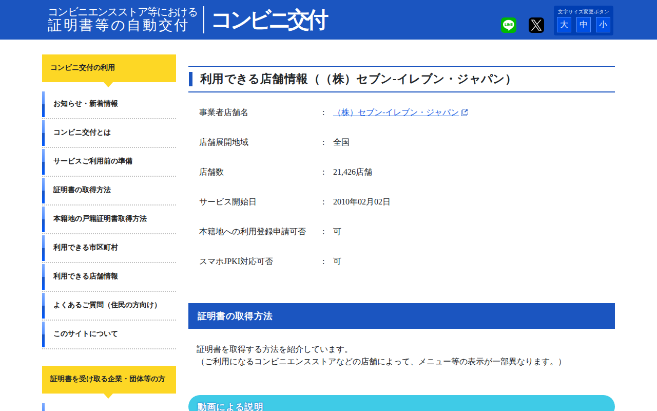 コンビニエンスストア等における証明書等の自動交付【コンビニ交付】 | 利用できる店舗情報((株)セブン‐イレブン・ジャパン)