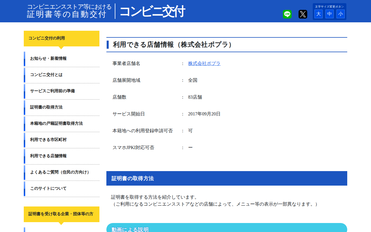 コンビニエンスストア等における証明書等の自動交付【コンビニ交付】 | 利用できる店舗情報(株式会社ポプラ)
