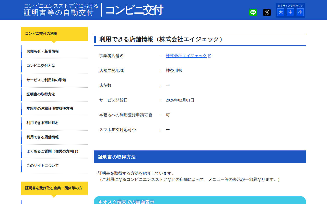 コンビニエンスストア等における証明書等の自動交付【コンビニ交付】 | 利用できる店舗情報(株式会社エイジェック)