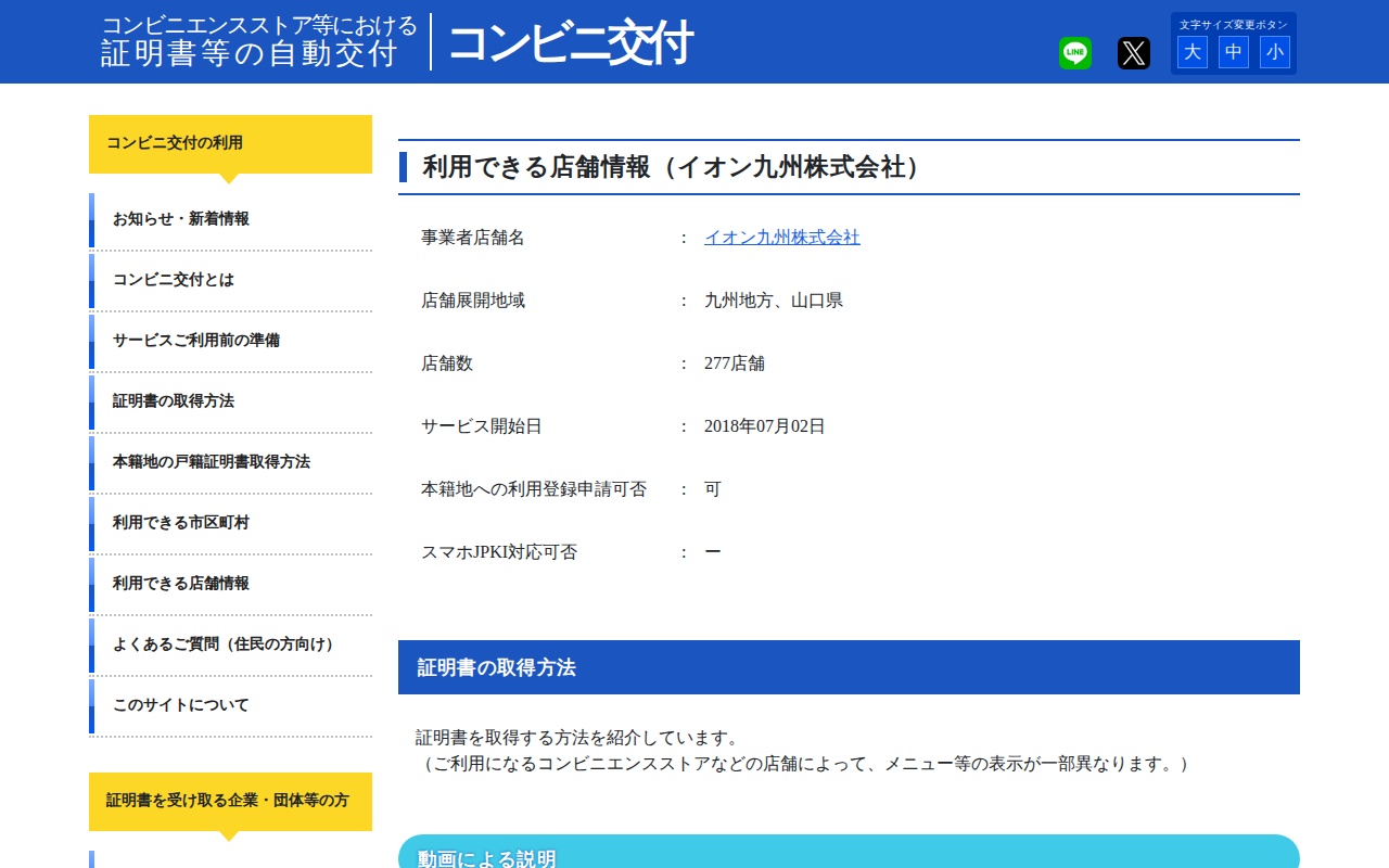 コンビニエンスストア等における証明書等の自動交付【コンビニ交付】 | 利用できる店舗情報(イオン九州株式会社)