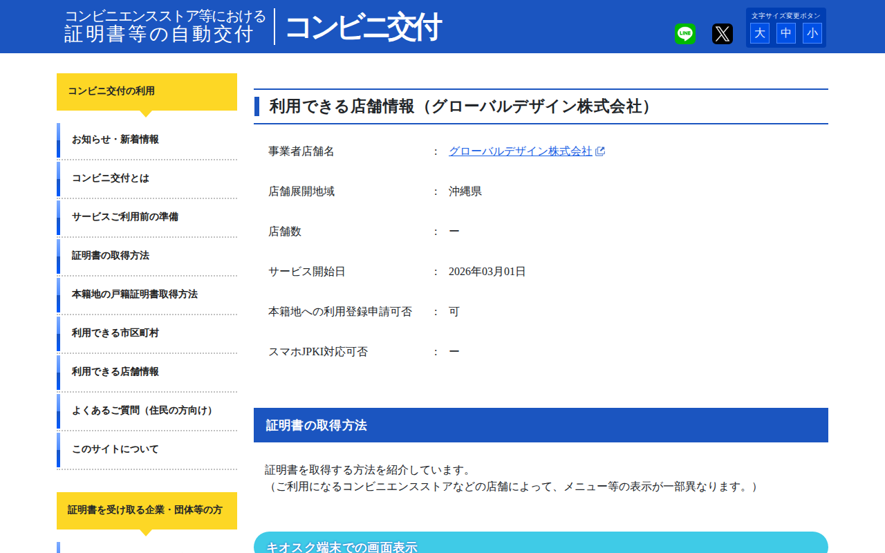 コンビニエンスストア等における証明書等の自動交付【コンビニ交付】 | 利用できる店舗情報(グローバルデザイン株式会社)