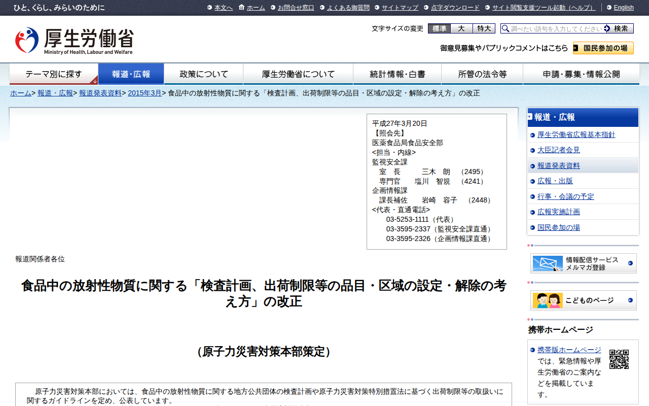 食品中の放射性物質に関する「検査計画、出荷制限等の品目・区域の設定・解除の考え方」の改正 |報道発表資料|厚生労働省