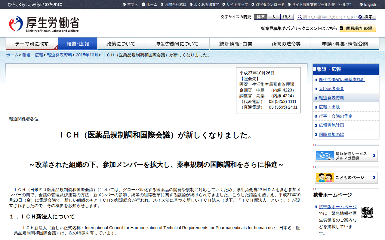ICH(医薬品規制調和国際会議)が新しくなりました。 |報道発表資料|厚生労働省