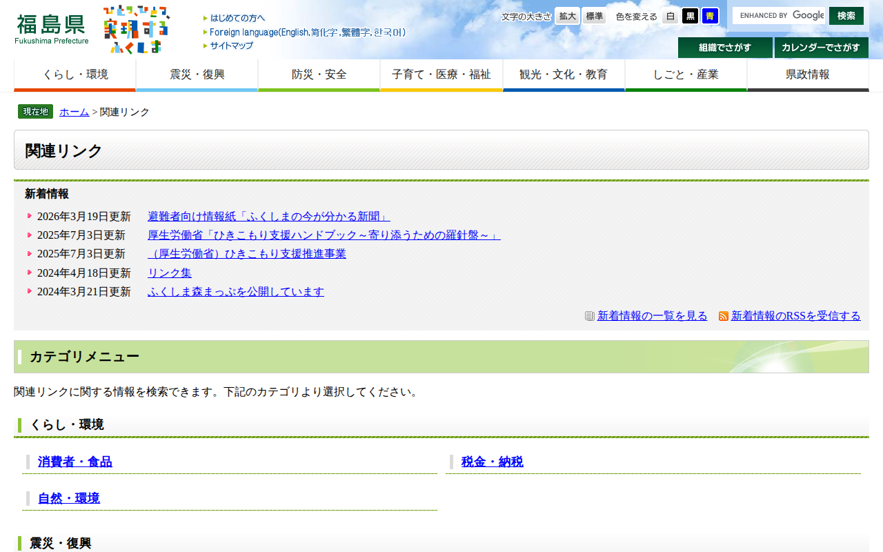 関連リンク - 福島県ホームページ