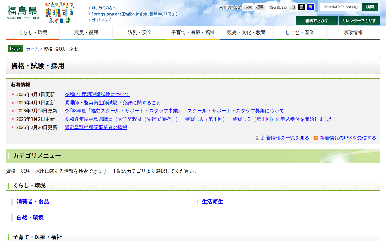 資格・試験・採用 - 福島県ホームページ