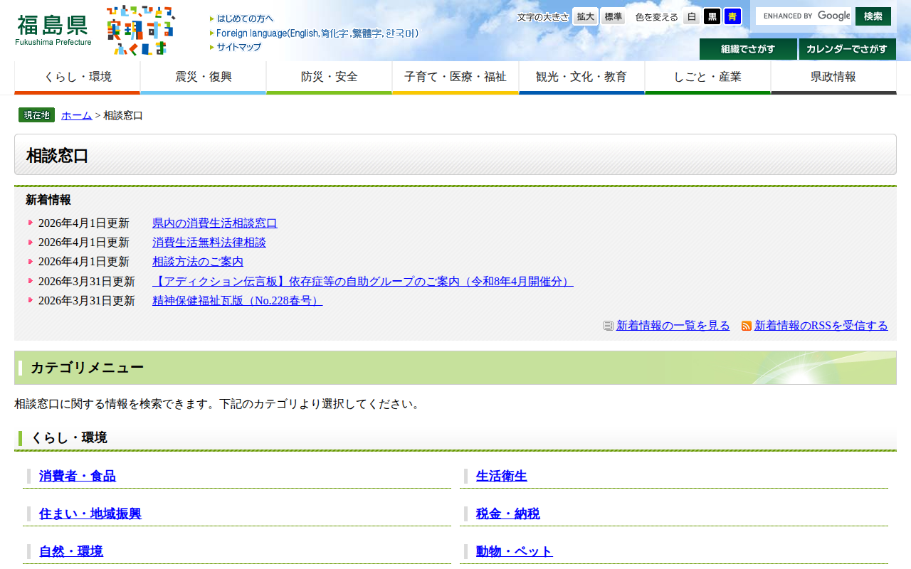 相談窓口 - 福島県ホームページ