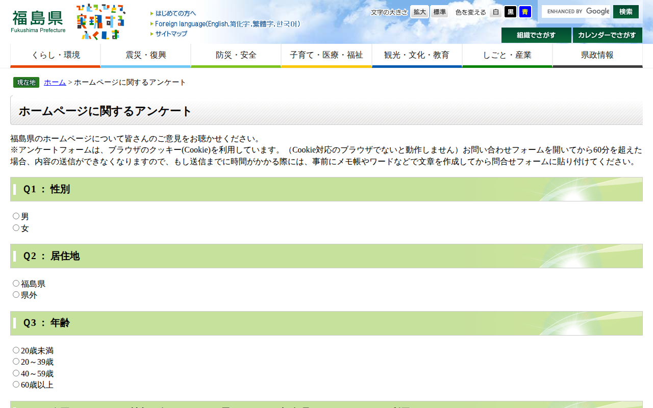 ホームページに関するアンケート - 福島県ホームページ