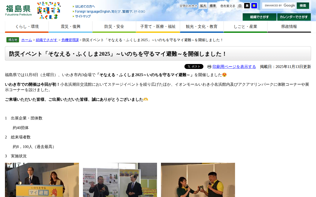 防災イベント「そなえる・ふくしま2025」~いのちを守るマイ避難~を開催しました! - 福島県ホームページ