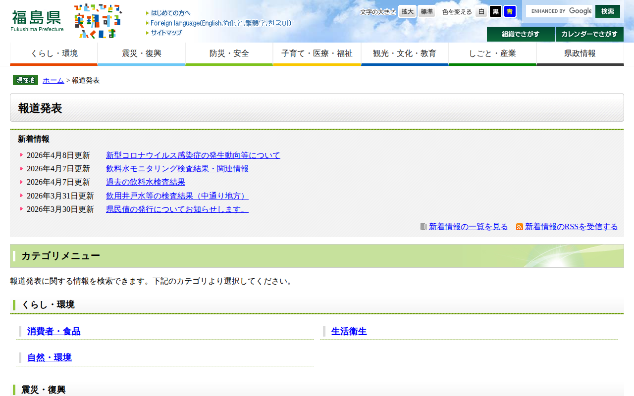 報道発表 - 福島県ホームページ