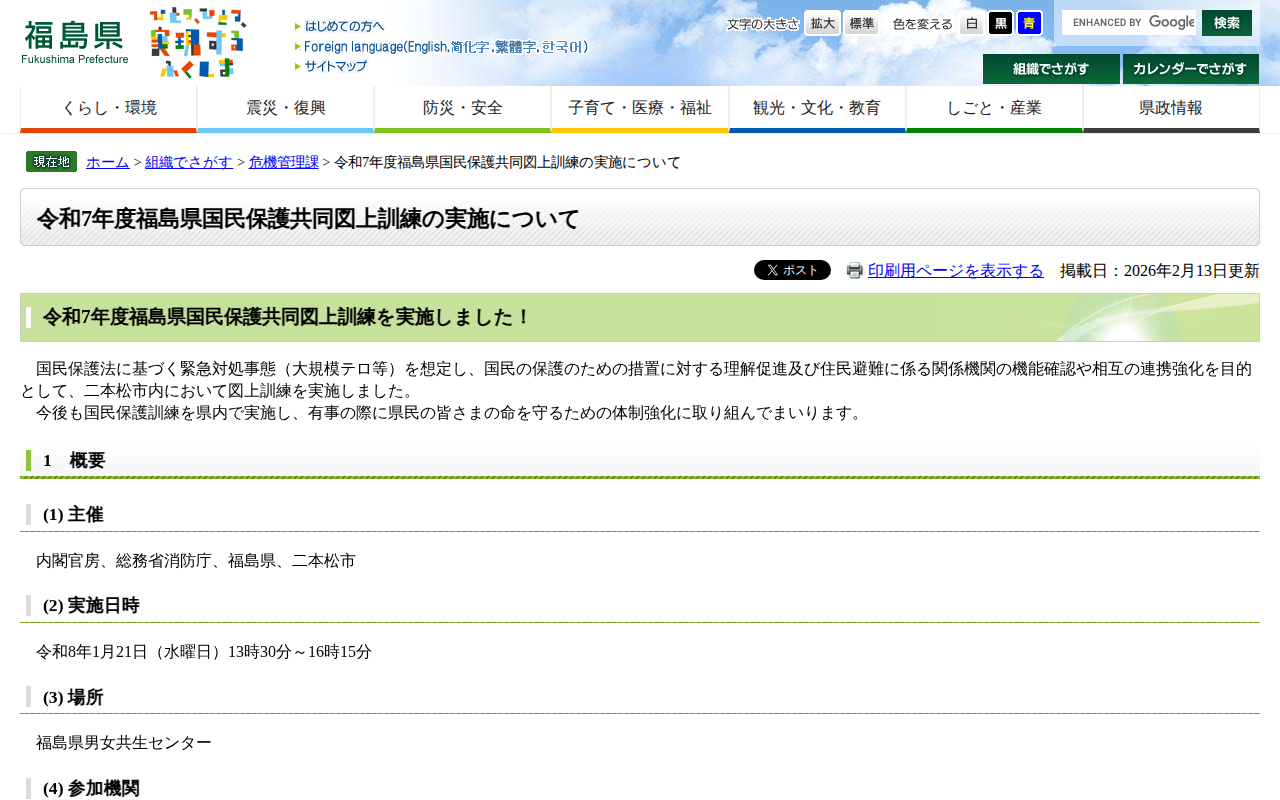 令和7年度福島県国民保護共同図上訓練の実施について - 福島県ホームページ