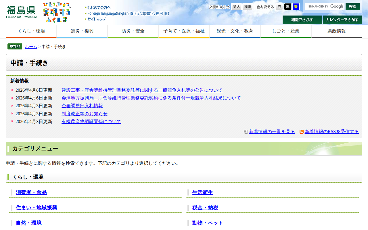 申請・手続き - 福島県ホームページ