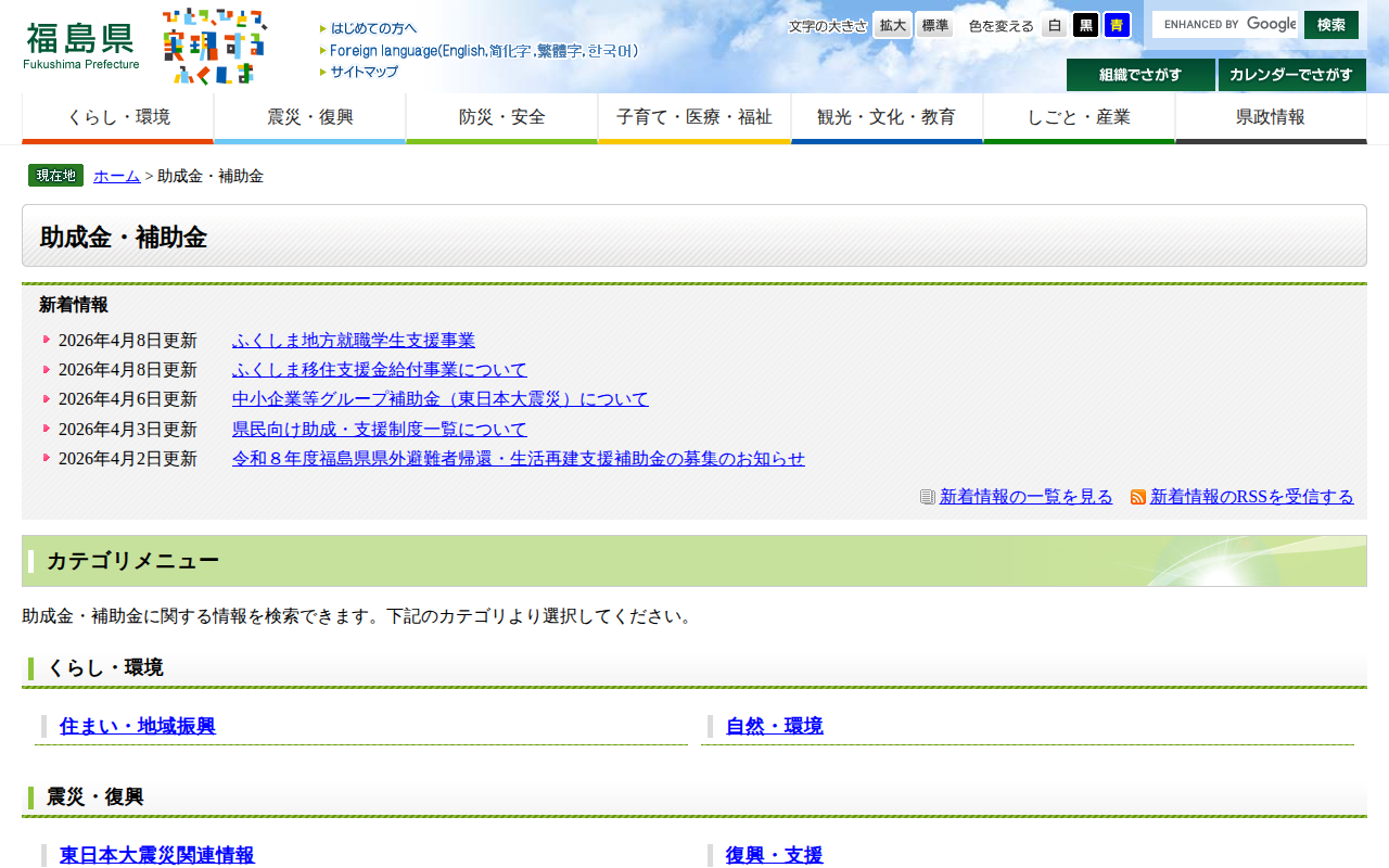 助成金・補助金 - 福島県ホームページ