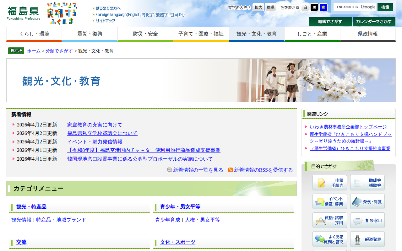 観光・文化・教育 - 福島県ホームページ
