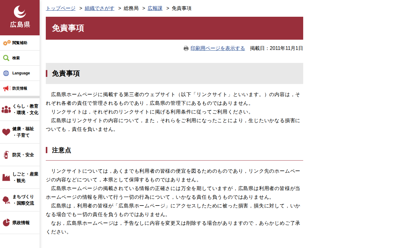 免責事項 | 広島県