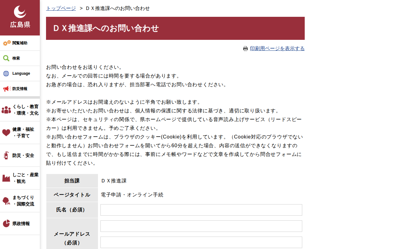 DX推進課へのお問い合わせ | 広島県