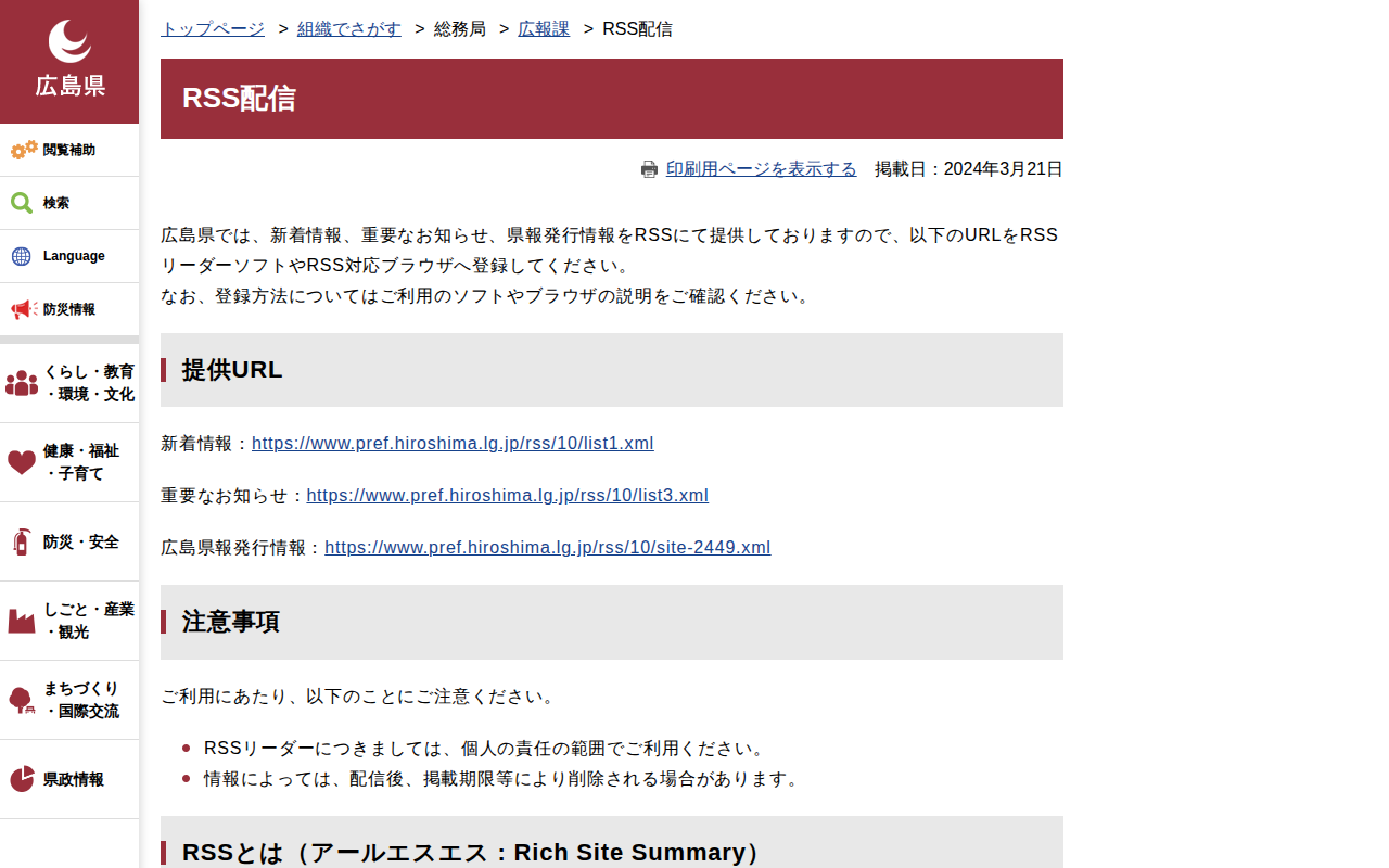 RSS配信 | 広島県