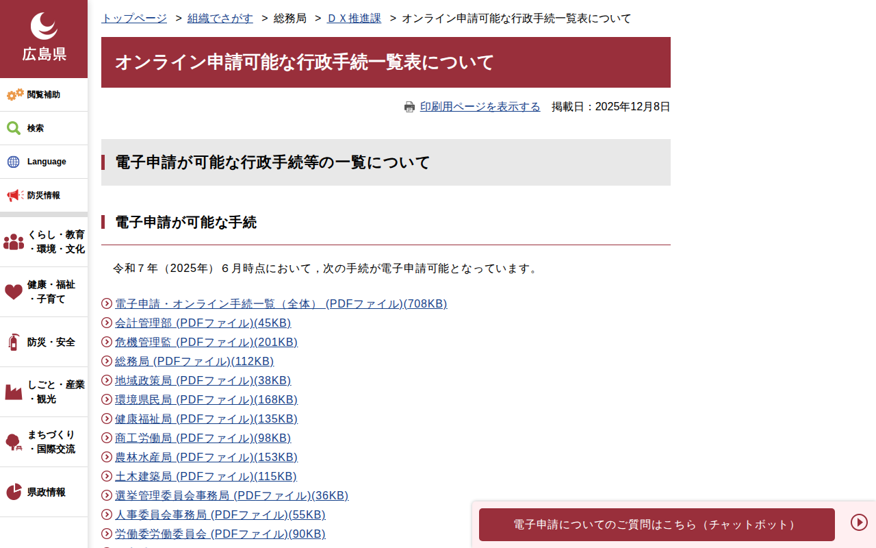 オンライン申請可能な行政手続一覧表について | 広島県