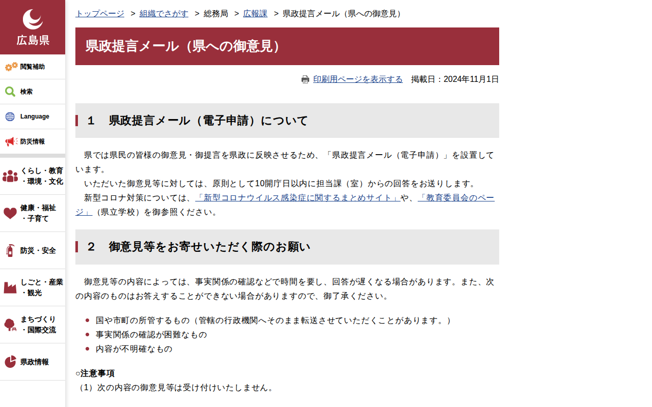 県政提言メール(県への御意見) | 広島県