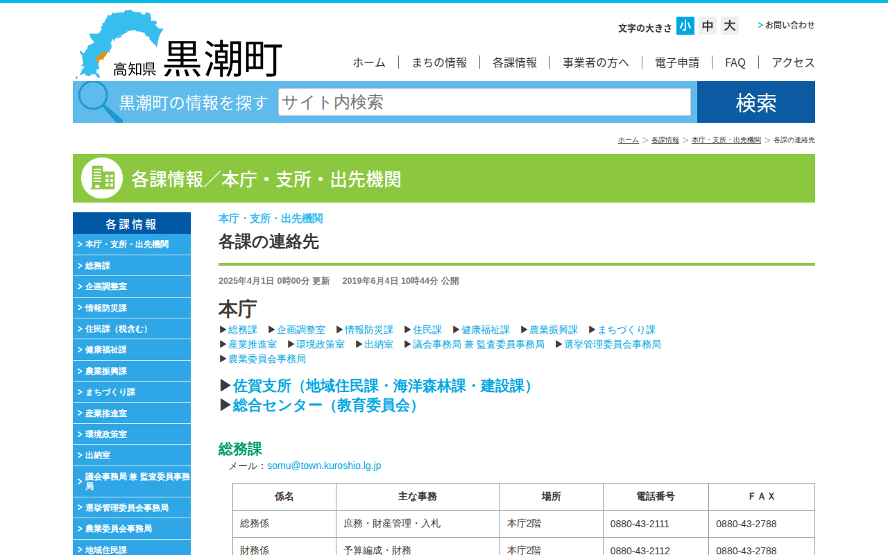 各課の連絡先│黒潮町公式ホームページ
