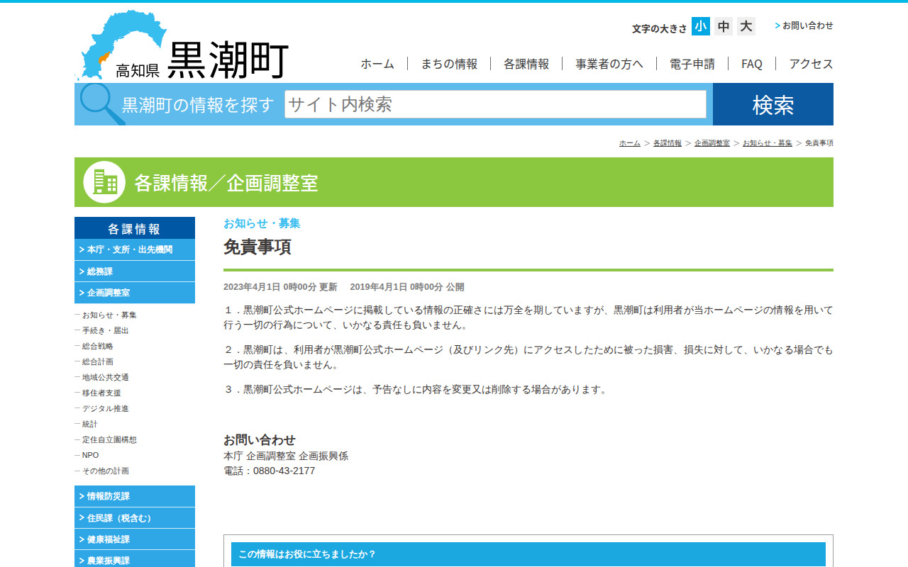 各課情報│黒潮町公式ホームページ