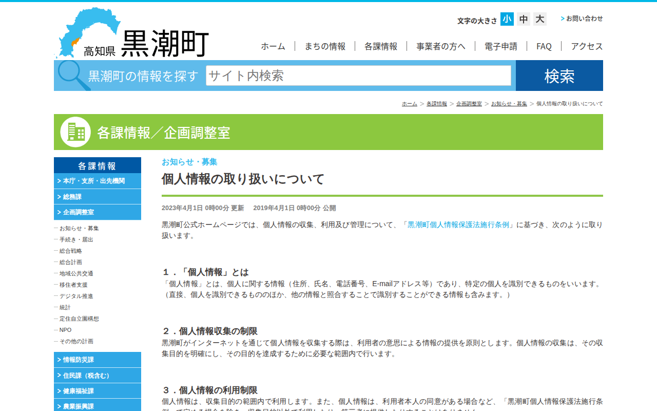 個人情報の取り扱いについて│黒潮町公式ホームページ