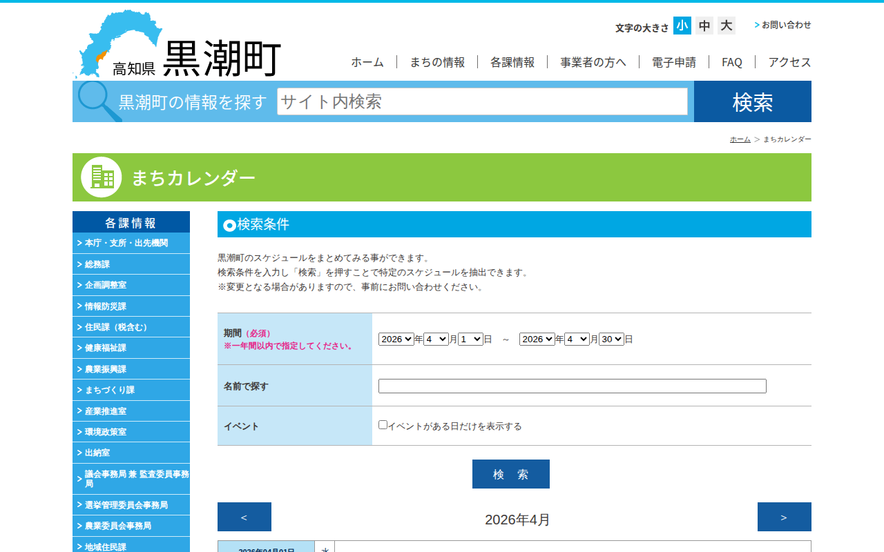 まちカレンダー│黒潮町公式ホームページ