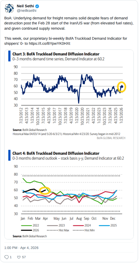 This page presents Bank of America's analysis indicating that underlying demand for freight remains solid desp...